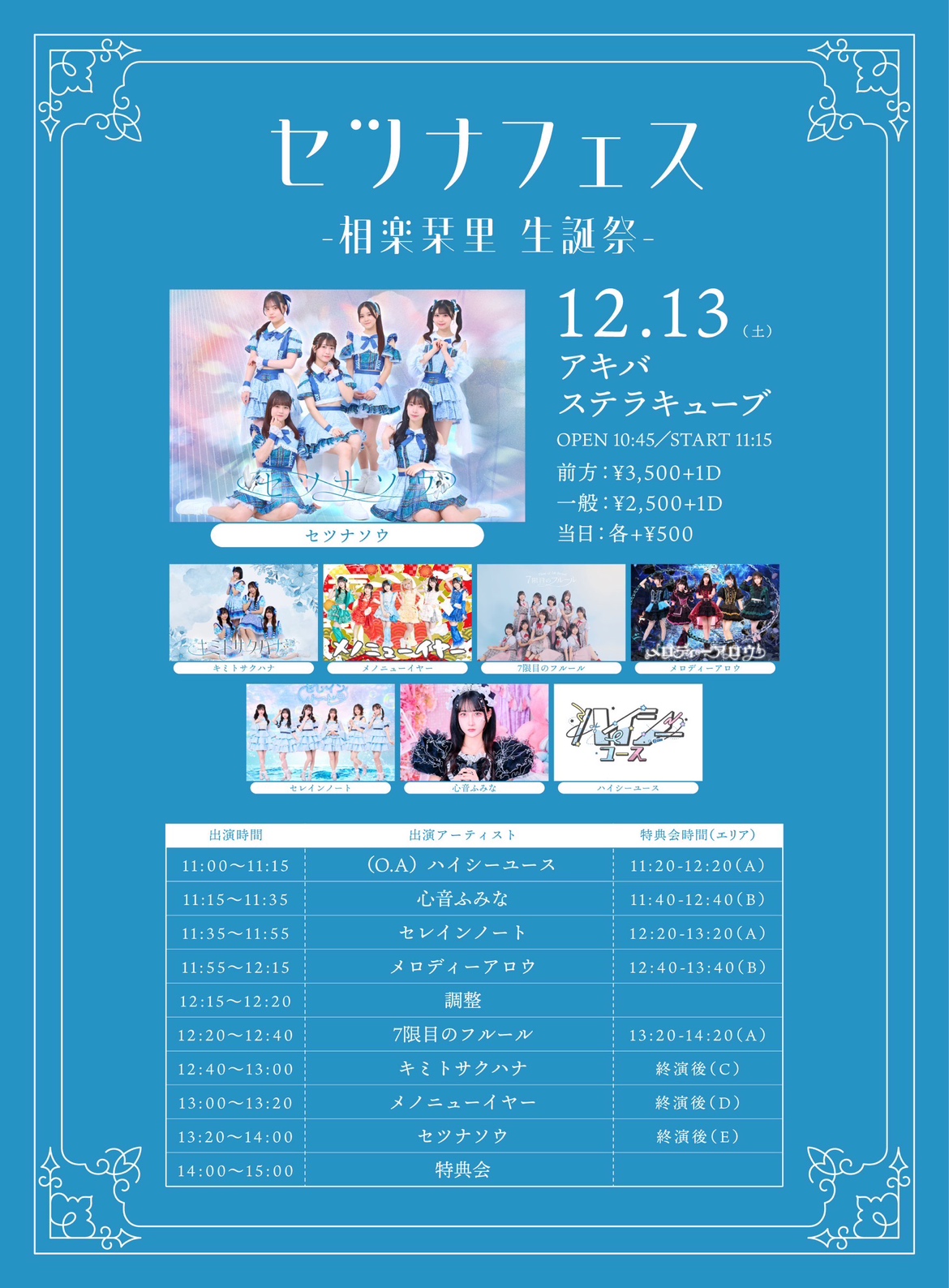 12/13(土)「セツナフェス -相楽栞里 生誕祭 2025-」詳細情報解禁!