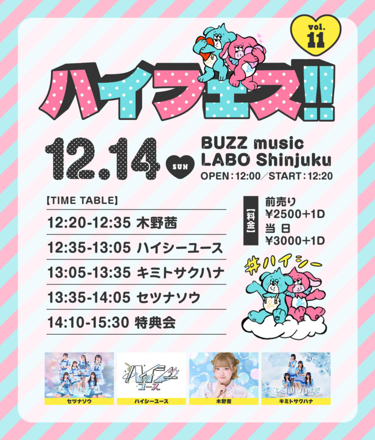 12/14(日)主催ライブ「ハイフェス!! vol.11」詳細情報解禁!