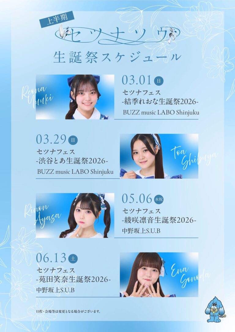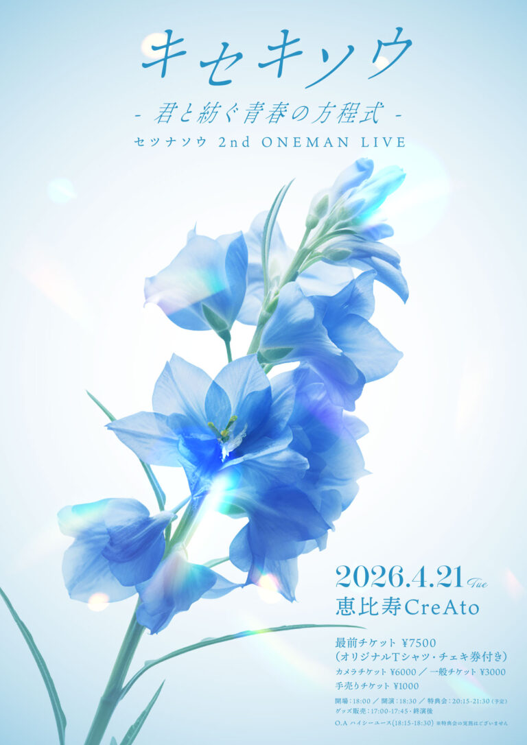セツナソウ 2nd ONEMAN LIVE 1周年記念公演 『キセキソウ – 君と紡ぐ青春の方程式 – 』 開催が決定いたしました! ■日程・会場2026/4/21(火)恵比寿CreAto https://www.cre […] -
