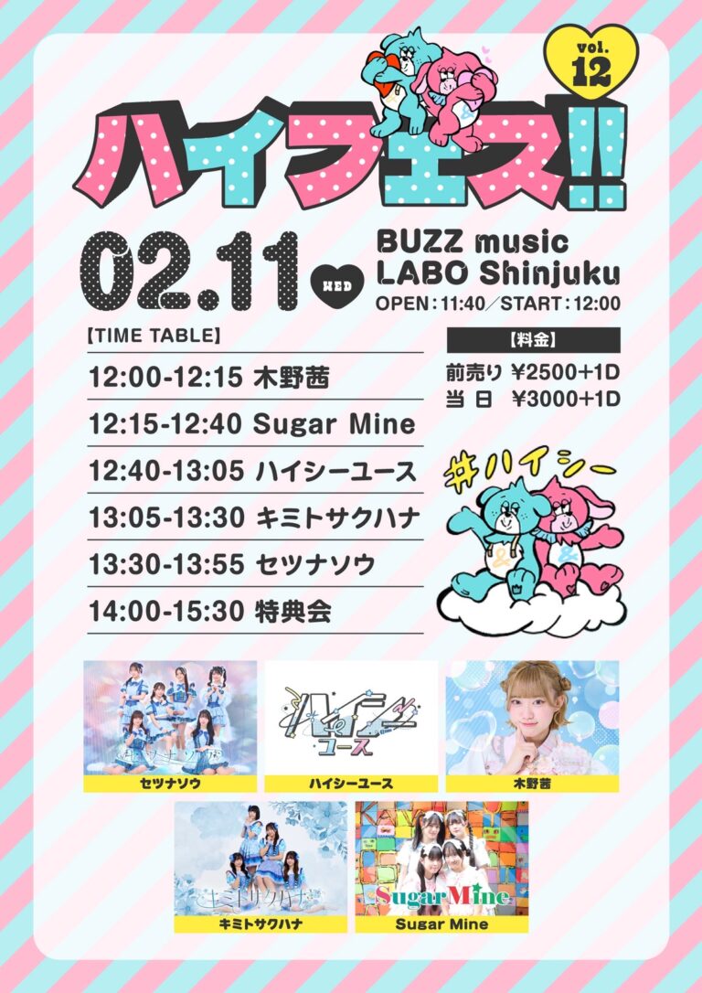 2/11(水祝)主催ライブ「ハイフェス!! vol.12」詳細情報解禁!