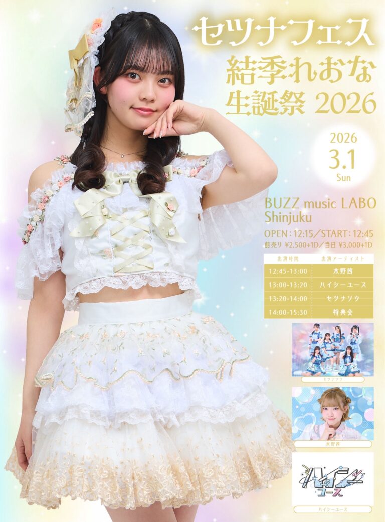 結季れおな・渋谷とあ・綾咲凛音・苑田笑奈の生誕祭開催が決定いたしました! 詳細は後日発表をいたします! 3/1(日)📍BUZZ music LABO shinjuku セツナフェス-結季れおな生誕祭202 […] -
